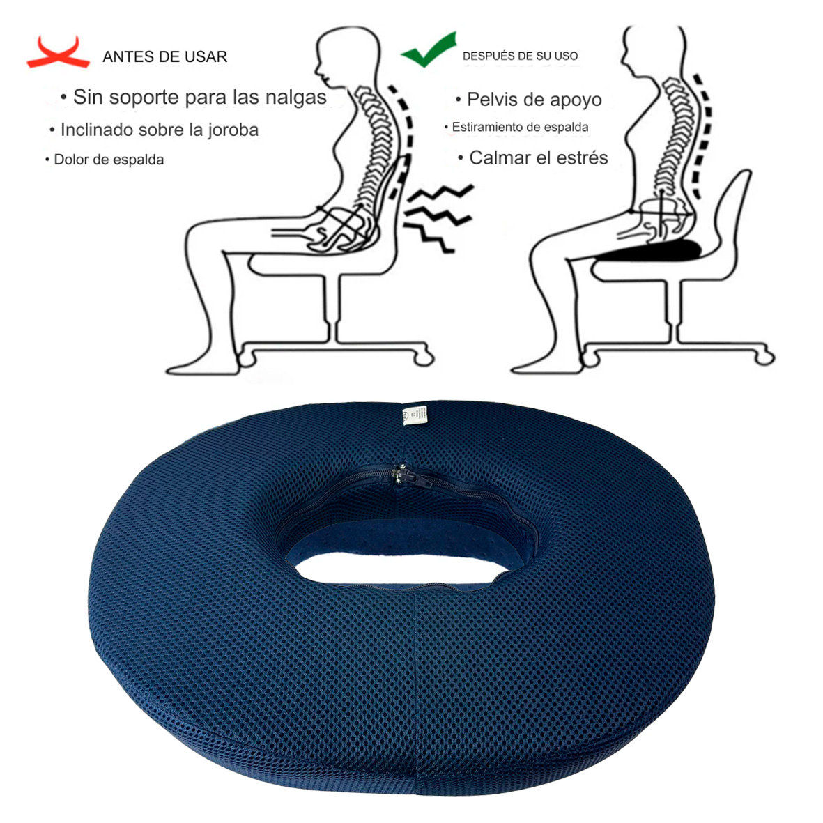 5. Diseño hueco en forma de O: el innovador espacio de ventilación se extiende desde el coxis hasta el área genital, proporcionando alivio para las hemorroides.