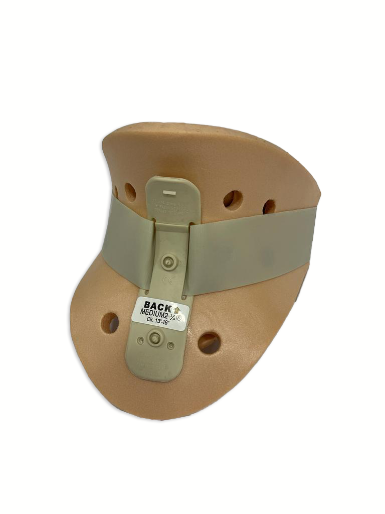 Confeccionado en 2 piezas de 13 mm de espesor conformando el occipucio y mandíbula (que limitan la flexo – extensión y rotación del cuello).